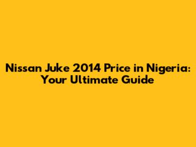 Nissan Juke 2014 Price: Your Nigerian Guide