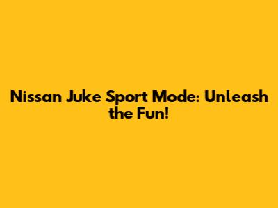 Nissan Juke Sport Mode: Unleash The Fun!