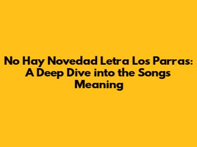 Hey guys! Ever heard that song that just hits you right in the feels? Well, for many of us, that song is "No Hay Novedad" by Los Parras. This track isn't just another tune; it's a powerful story wrapped in beautiful music. Today, we're going to dissect the lyrics, understand the emotions behind them, and explore why this song resonates with so many people. So, grab your headphones, maybe a box of tissues, and let's dive deep into the world of "No Hay Novedad."