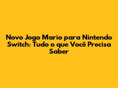 Novo Jogo Mario Para Nintendo Switch: Tudo O Que Você Precisa Saber