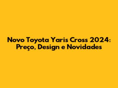 Novo Toyota Yaris Cross 2024: Preço, Design E Novidades