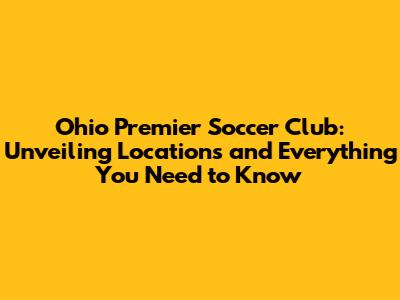 Ohio Premier Soccer Club: Location & Guide