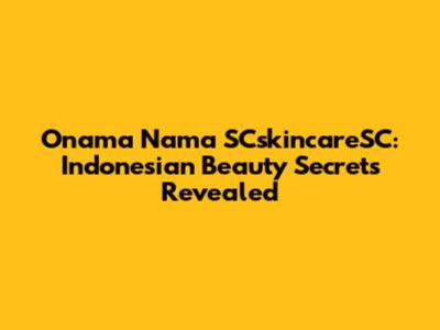 Onama Nama SCskincareSC: Indonesian Beauty Secrets Revealed