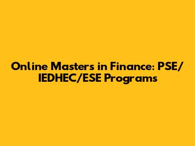 Online Master's In Finance: PSE/IEDHEC/ESE Programs