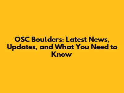 OSC Boulders: Latest News, Updates, And What You Need To Know