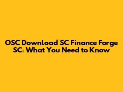OSC Download SC Finance Forge SC: What You Need To Know