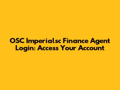 OSC Imperialsc Finance Agent Login: Access Your Account
