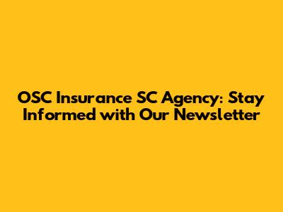 OSC Insurance SC Agency: News & Updates