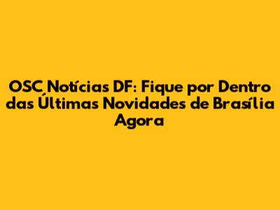 OSC Notícias DF: Últimas Novidades De Brasília Agora