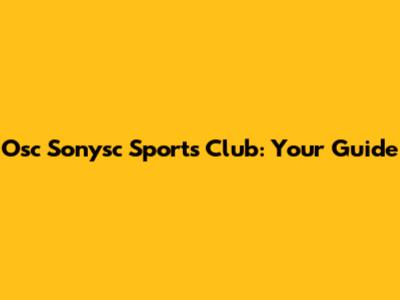 Osc Sonysc Sports Club: Your Guide