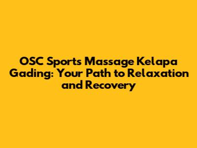 OSC Sports Massage Kelapa Gading: Your Guide To Relaxation