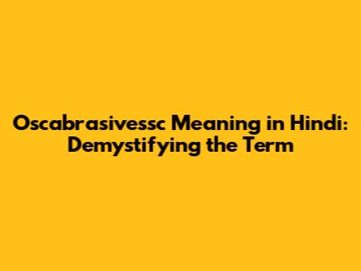 Oscabrasivessc Meaning In Hindi: Demystifying The Term