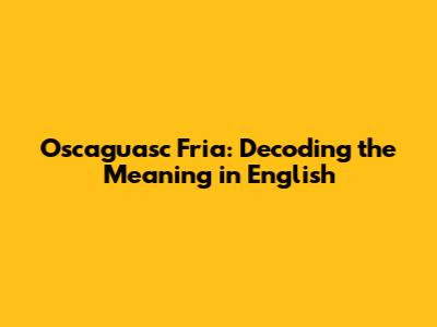 Oscaguasc Fria: Decoding The Meaning In English