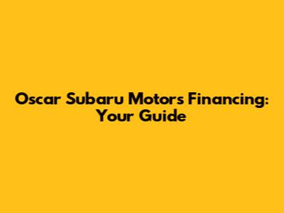 Oscar Subaru Motors Financing: Your Guide