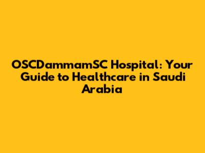 OSCDammamSC Hospital: Your Guide To Healthcare In Saudi Arabia