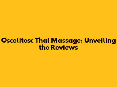 Oscelitesc Thai Massage: Unveiling The Reviews