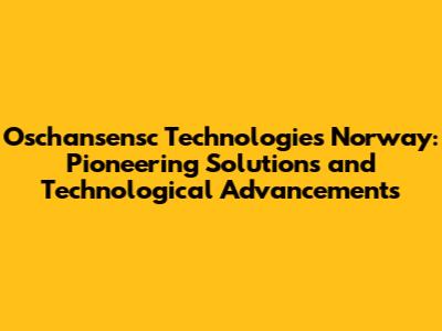 Oschansensc Technologies Norway: Innovations & Solutions
