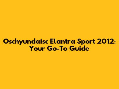 Oschyundaisc Elantra Sport 2012: Your Go-To Guide