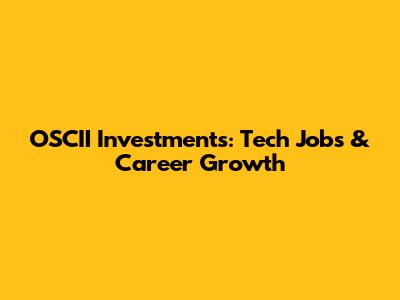 OSCII Investments: Tech Jobs & Career Growth