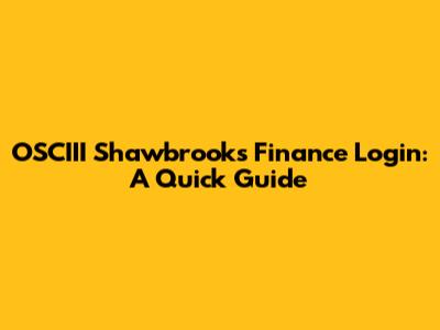 OSCIii Shawbrooks Finance Login Guide