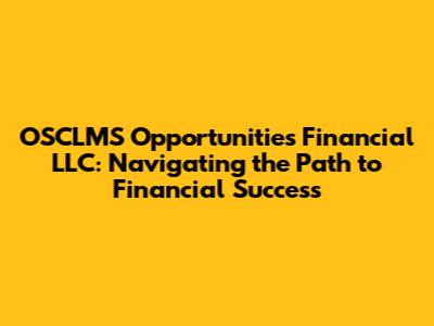 OSCLMS Opportunities Financial LLC: Your Path To Financial Growth