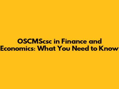 OSCMScsc: Finance & Economics Explained