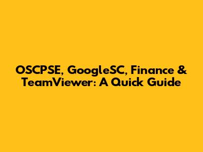 OSCPSE, GoogleSC, Finance & TeamViewer: A Quick Guide