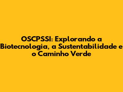 OSCPSSI: Biotecnologia, Sustentabilidade E O Futuro Verde