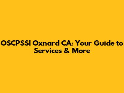 OSCPSSI Oxnard CA: Your Guide To Services & More
