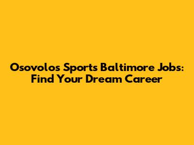 Osovolos Sports Baltimore Jobs: Find Your Dream Career