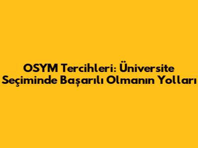 OSYM Tercihleri: Üniversite Seçiminde Başarılı Olmanın Yolları