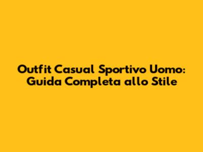 Outfit Casual Sportivo Uomo: Guida Stile Per Un Look Perfetto