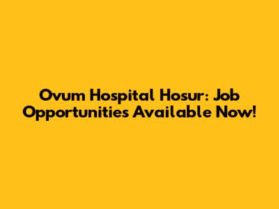 Ovum Hospital Hosur: Job Opportunities Available Now!