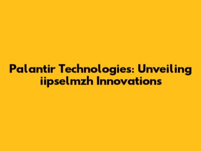 Palantir Technologies: Unveiling Iipselmzh Innovations
