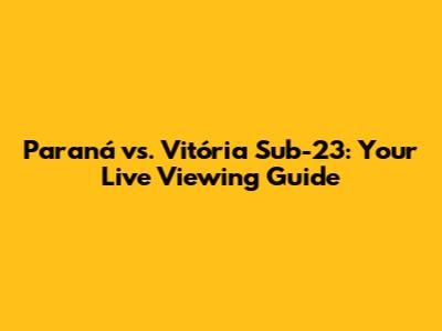 Paraná Vs. Vitória Sub-23: Where To Watch Live