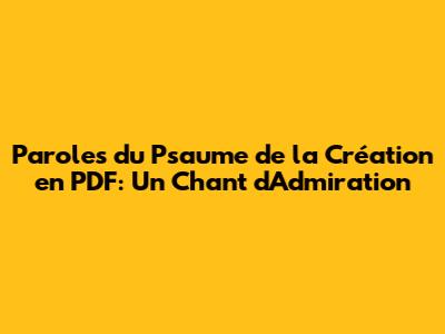 Salut les amis ! Aujourd'hui, on plonge dans quelque chose de vraiment spécial : le Psaume de la Création. Vous cherchez les paroles en PDF pour pouvoir chanter, prier ou simplement méditer sur la grandeur de notre monde ? Vous êtes au bon endroit, les gars ! Ce psaume, c'est une véritable ode à la magnificence de Dieu à travers sa création. Il nous rappelle, dans chaque verset, la puissance, la sagesse et l'amour infini qui ont façonné tout ce qui existe. Que vous soyez dans un contexte religieux ou que vous aimiez simplement la poésie qui exalte la nature, ce psaume a quelque chose à offrir.