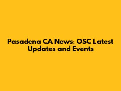 Pasadena CA News: OSC Latest Updates And Events