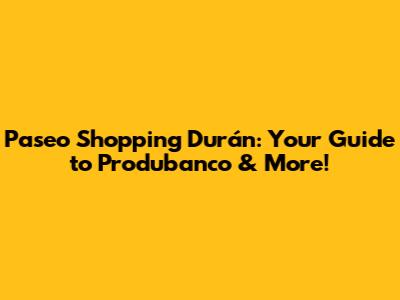 Paseo Shopping Durán: Your Guide To Produbanco & More!