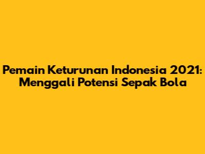 Pemain keturunan Indonesia 2021 menjadi topik yang sangat menarik dan relevan dalam dunia sepak bola tanah air. Tahun 2021 menjadi saksi bagaimana para pemain dengan darah Indonesia yang bermain di luar negeri, mulai dari liga-liga Eropa hingga Amerika, menjadi sorotan utama. Kehadiran mereka tidak hanya memberikan harapan baru bagi perkembangan sepak bola Indonesia, tetapi juga membuka wawasan mengenai potensi pemain-pemain berkualitas yang bisa memperkuat tim nasional. Artikel ini akan membahas secara mendalam mengenai para pemain keturunan Indonesia yang bersinar di tahun 2021, mengapa mereka penting, dan bagaimana dampaknya bagi masa depan sepak bola Indonesia.