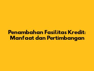 Penambahan fasilitas kredit adalah proses di mana lembaga keuangan, seperti bank atau perusahaan pembiayaan, meningkatkan batas kredit yang tersedia bagi seorang individu atau bisnis. Fasilitas ini bisa berupa kartu kredit, kredit tanpa agunan (KTA), atau jenis pinjaman lainnya. Peningkatan ini memungkinkan peminjam untuk mengakses dana yang lebih besar daripada sebelumnya, yang bisa digunakan untuk berbagai keperluan, mulai dari modal kerja hingga pengeluaran tak terduga.