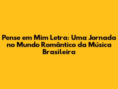A música é um diálogo entre duas almas, uma que sente a falta e outra que é lembrada. A letra nos faz refletir sobre a importância de manter a chama do amor acesa, mesmo quando a distância física nos separa. Ela nos lembra que o amor verdadeiro transcende barreiras e que a lembrança é uma forma de manter a conexão viva. "Pense em Mim" é uma canção que nos ensina a valorizar os momentos de felicidade, a lutar pelo amor e a acreditar na força dos sentimentos. A letra é um convite à reflexão, um lembrete de que o amor é um sentimento que merece ser cultivado e preservado. É uma canção que nos toca no fundo da alma, despertando emoções e lembranças que nos conectam com o nosso eu mais profundo. A música é um retrato da saudade, da esperança e da persistência do amor. É uma obra de arte que nos faz sentir, que nos faz lembrar e que nos faz amar.