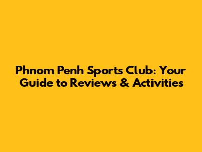 Phnom Penh Sports Club: Your Guide To Reviews & Activities
