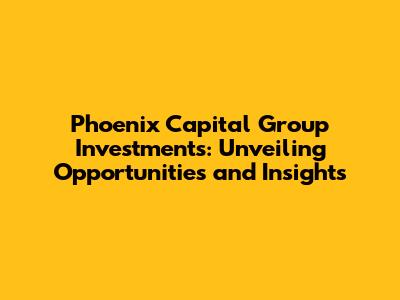Hey guys! Ever heard of Phoenix Capital Group Investments? It's a pretty big name in the investment world, and today, we're diving deep into what makes them tick. We will explore Phoenix Capital Group Investments, shedding light on their strategies, performance, and overall impact on the financial landscape. Whether you're a seasoned investor or just starting, understanding firms like Phoenix Capital Group is crucial for making informed decisions.