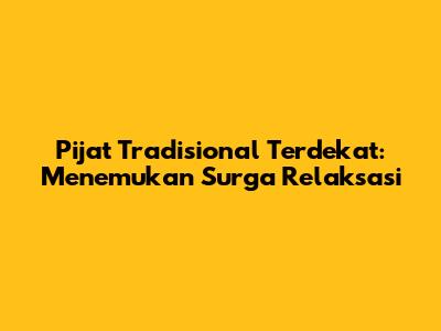 Pijat Tradisional Terdekat: Temukan Relaksasi Terbaik!