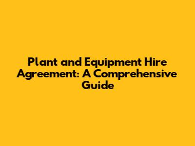 Plant And Equipment Hire Agreement Guide