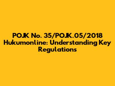 Hey guys! Let's dive into POJK No. 35/POJK.05/2018, a regulation you might have stumbled upon while navigating the Indonesian financial landscape, especially via Hukumonline. This isn't just another set of rules; it's a crucial piece of legislation that shapes how certain financial activities are conducted. We're going to break down the essentials, making it easier to understand why this regulation matters and how it impacts various stakeholders. Think of this as your friendly guide to demystifying POJK 35/2018. We will explore its core objectives, the specific areas it governs, and the practical implications it holds for businesses and consumers alike. No jargon-filled legal speak here, just straightforward explanations to keep you in the loop. So, grab a cup of coffee, and let's get started! Understanding regulations like POJK 35/2018 is essential for operating smoothly and confidently in Indonesia's dynamic financial sector. Whether you are a seasoned professional, an aspiring entrepreneur, or simply someone curious about the legal framework, this breakdown will provide you with the knowledge you need to stay informed and compliant. Remember, knowledge is power, especially when it comes to navigating the complex world of financial regulations. Let’s make sure you’re well-equipped to understand and apply the principles of POJK 35/2018 in your respective endeavors. Stay tuned as we uncover the key aspects of this important regulation and explore its implications for various sectors. Let’s jump right into it and unravel the complexities together!