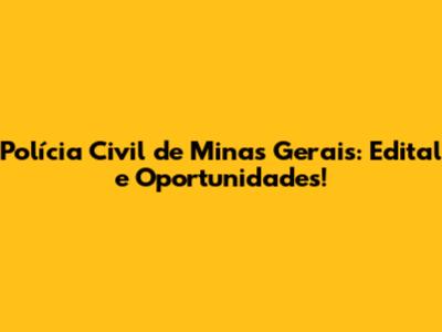 Polícia Civil MG: Edital E Oportunidades!