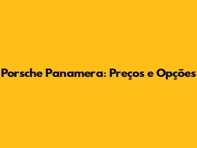 Porsche Panamera: Preços E Opções