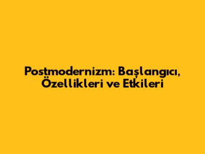 Postmodernizm: Başlangıcı, Özellikleri Ve Etkileri