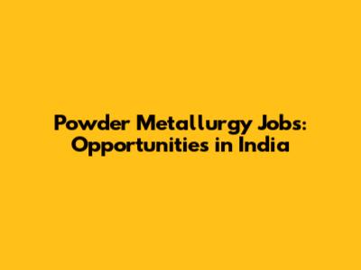 Powder Metallurgy Jobs: Opportunities In India